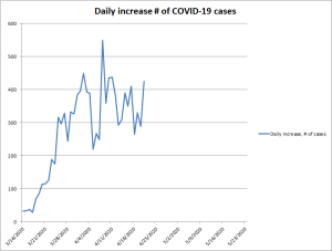 But I have to add a note of caution. If you graph the curves for hospitalizations and it’ll look like hospitalizations peaked in late March and deaths peaked about 10 days ago, but I’m skeptical about the data. Partly that’s because I just got bit by misinterpreting data, but it’s more because we know that the data is being updated and we know that there are a lot of asymptomatic carriers of COVID-19.