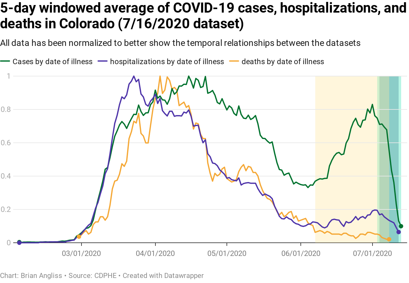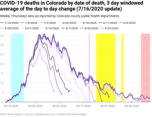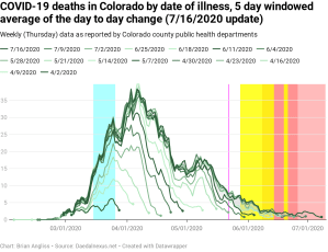 While I remain hopeful that whichever strain of COVID-19 is circulating right now is less lethal than the first strain to hit Colorado, but I’m afraid that it’s only a matter of time before deaths start to climb as well.