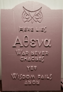 I also started preparations for the big obelisk I’ve designed with some glue tests and YouTube research. My first glue (Loctite PL foamboard glue) wasn’t ideal for large gluing large panels together and I’m hoping the Gorilla glue spray works better. It showed a little bit of surface melt due to the solvent(s) in the can, so it may not be a good plan at this point. There may be some techniques that can reduce that – I’ll have to do another experiment if this current one is even remotely acceptable. I’ll know more tonight at the 24 hour mark when I take my test sample and slice it up with the hot wire cutter.