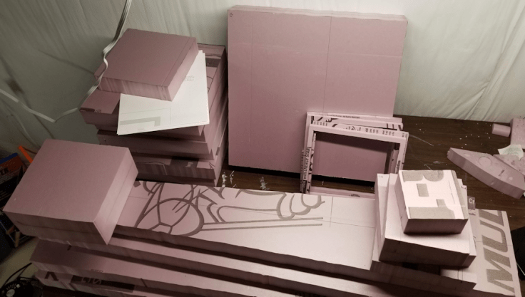 The photo below shows all the separate parts that I’m going to use to create the the obelisk for Anpu, aka Anubis. I’m hoping to be able to put it together in two pieces, but if not, well, at least it’s made out of lightweight XPS foam, right?