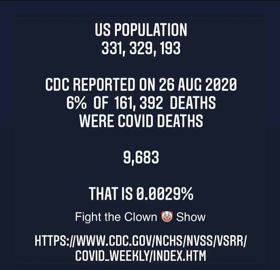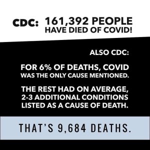 On August 26, the CDC published COVID-19 comorbidity data that showed only a small number of deaths from COVID-19 alone, while a large number of deaths occurred in combination with other chronic medical conditions such as high blood pressure, heart failure, COPD, diabetes, pneumonia, renal failure, obesity, and others.