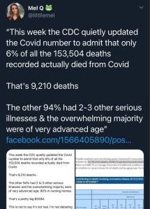 However, a lot of people who believe that COVID-19 is a hoax or a “Plandemic” or a liberal conspiracy to erode freedoms and force tyrannical socialism on the country seem to think that this is a “gotcha!” moment. One of those people was Donald Trump, who tweeted a QAnon account who essentially said that the CDC had lied and been caught lying about the actual COVID-19 death totals in the US. And ever since, some people have been sharing the false interpretation of the CDC’s data all over Twitter and Facebook. They believe that this is the CDC admitting that there have been fewer than 10,000 COVID deaths in the US, not the nearly 183,000 deaths counted by the CDC as of August 31, 2020.