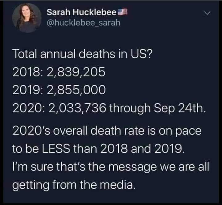 Fourth, even if total deaths were down, Huckabee-Sanders offers no investigation of why that might be the case. For example, vehicle deaths might be lower since total vehicle miles traveled have dropped as a result of COVID restrictions.