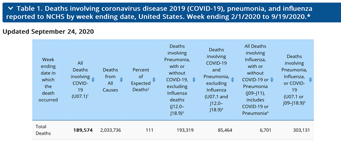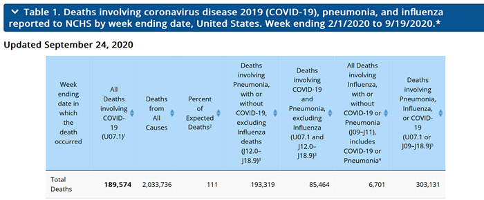 This means that the total number of deaths is only 75% accurate even 8 weeks after death due to reporting delays and other issues. And we can see this in the comparison of the data as of September 24 to the latest data as of October 16. If you add up all the weekly deaths from 2/1 through 9/19, there are 72,716 deaths that have been added in the last month.
